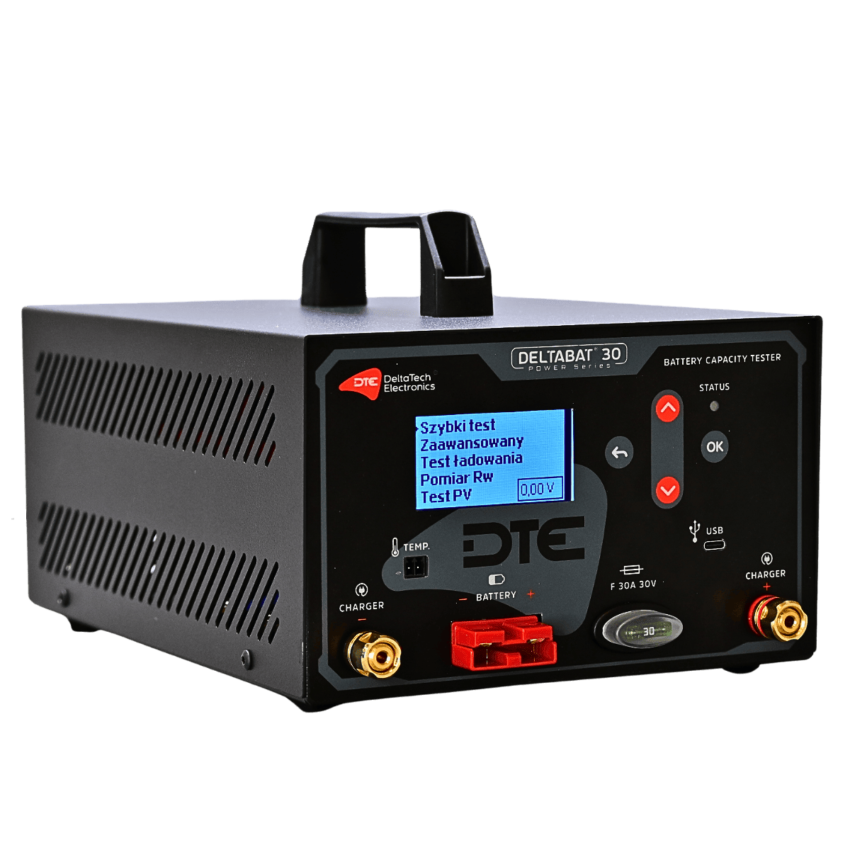 DELTABAT® 30 to profesjonalny tester pojemności i rozładowalnica do pracy z akumulatorami o napięciu od 1 do 30 V. Urządzenie jest przystosowane do intensywnej eksploatacji w serwisach, magazynach energii oraz działach reklamacji.